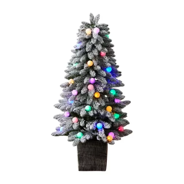 Nearly Natural Flocked Faux 3 Foot Pre-Lit Fir Christmas Tree