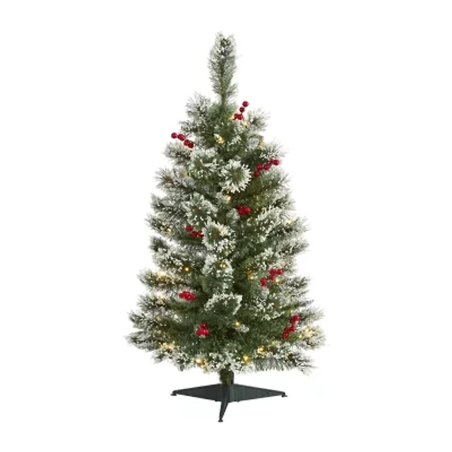 Nearly Natural Foot Flocked Pine Pre-Lit Christmas Tree