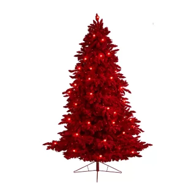 Nearly Natural Fraser Faux Red 8 Foot Pre-Lit Fir Christmas Tree