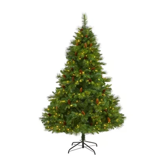 Nearly Natural 6 Foot Pine With Pine Cones Pre-Lit Christmas Tree