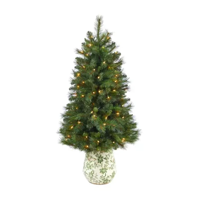 Nearly Natural 4 Foot Pre-Lit Pine Christmas Tree