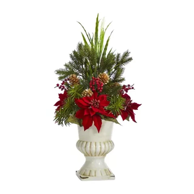 Nearly Natural Poinsettia Pine Arrangement Christmas Tabletop Decor