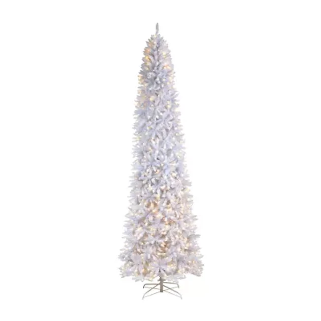 Nearly Natural Slim Flocked Faux 10 Foot Pre-Lit Fir Christmas Tree