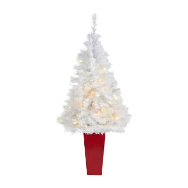 Nearly Natural 50in. White 4 Foot Pre-Lit Potted Pine Christmas Tree