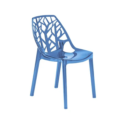 Designed to upgrade any outdoor living space, this chic contemporary stackable chair has all the right angles. Crafted with the strength and durability of metal, its modern bright white finish and comfortable navy textiline makes it a designer must-have.