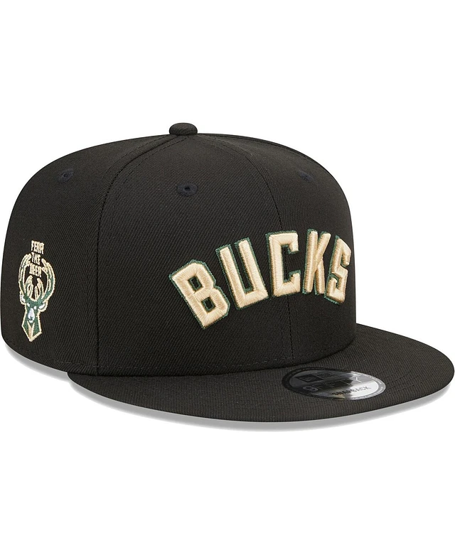 New Era Men's Black Milwaukee Bucks Jersey Hook Statement Edition 9FIFTY Snapback Hat