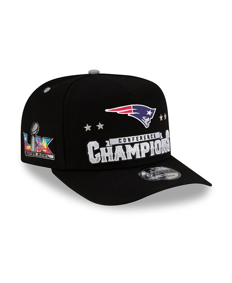 New Era Men's Black New England Patriots 2025 Afc Champions Locker Room Trophy Collection A-Frame 9FIFTY Snapback Hat