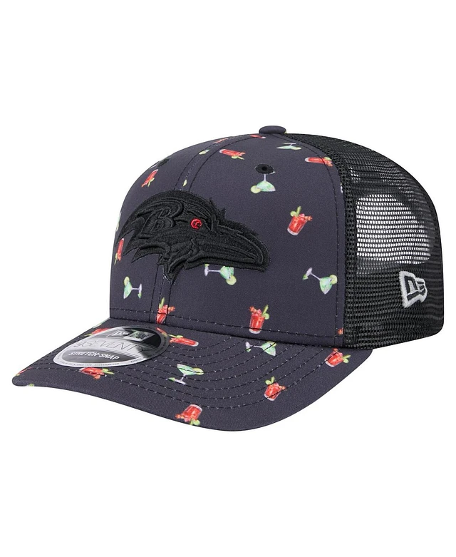New Era Men's Navy/Black Baltimore Ravens Adventure Drinks Pattern 9SEVENTY Stretch Snap Hat