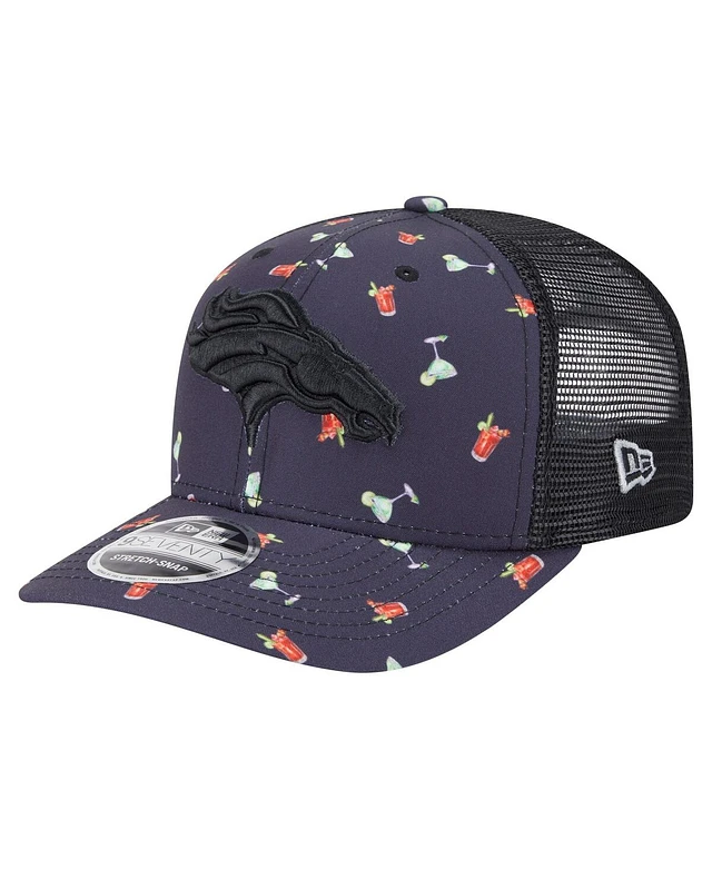 New Era Men's Navy/Black Denver Broncos Adventure Drinks Pattern 9SEVENTY Stretch-Snap Hat