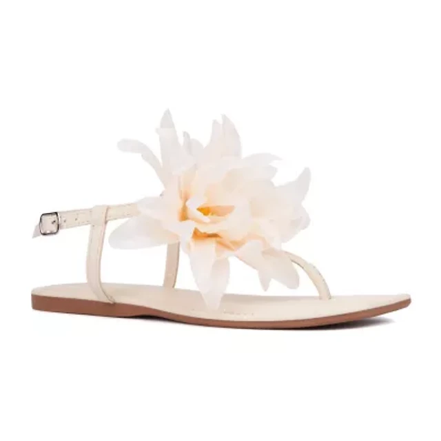 New York & Company Womens Rosette T-Strap Flat Sandals