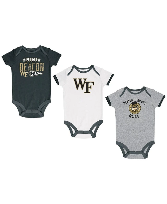 Infant Boys and Girls Champion Black, Gray, White Distressed Wake Forest Demon Deacons 3-Pack Bodysuit Set