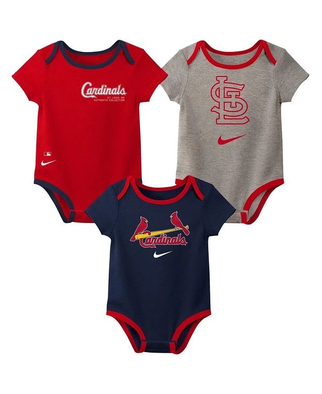 Nike Baby Boys and Girls St. Louis Cardinals Authentic Collection Three-Pack Bodysuit Set