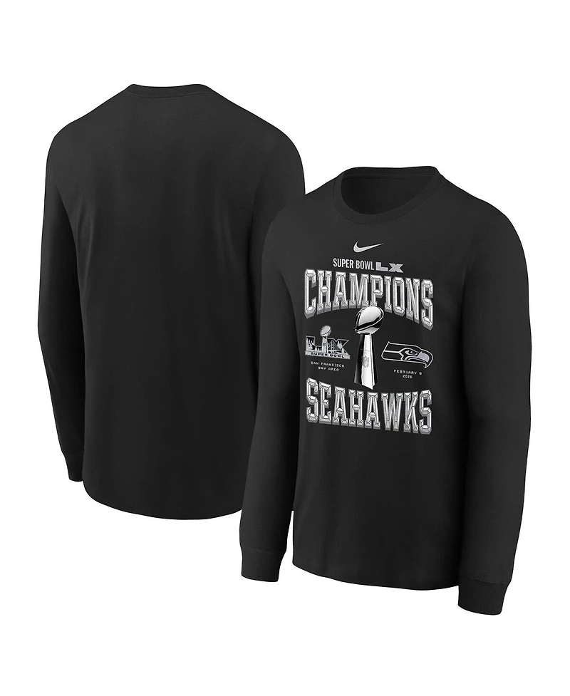 Nike Big Boys and Girls Black Seattle Seahawks Super Bowl Lx Champions Locker Room Trophy Collection Long Sleeve T-Shirt