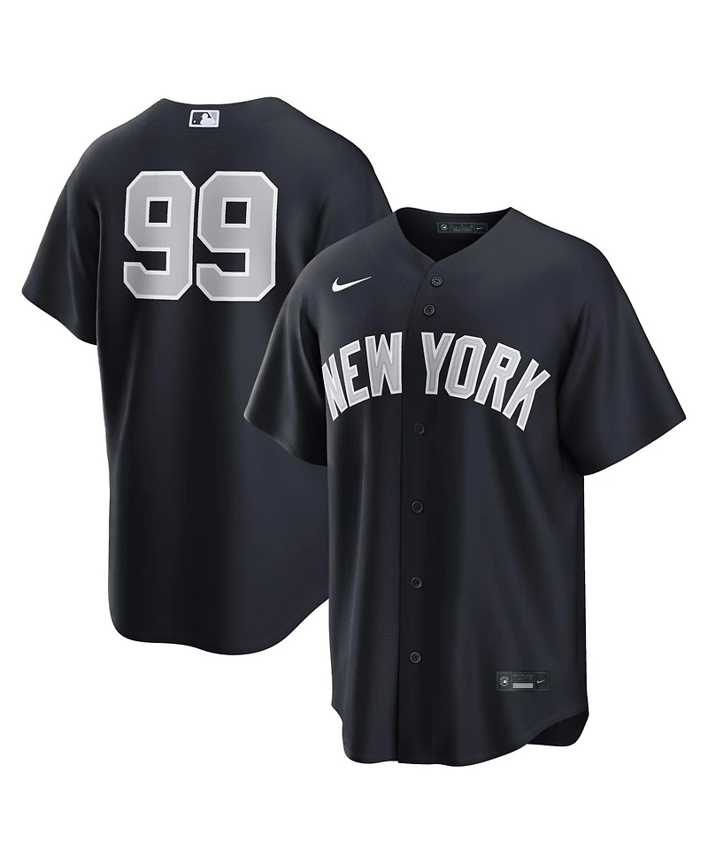 Step up to the plate and showcase your New York Yankees pride with the Nike Aaron Judge Alternate Replica Jersey. Designed to mirror the on-field jerseys, this jersey features a comfortable, loose fit perfect for layering. The heat-pressed twill wordmark on the chest and twill name and numbers with smooth printed stitching showcase your unwavering support for Aaron Judge and the New York Yankees.