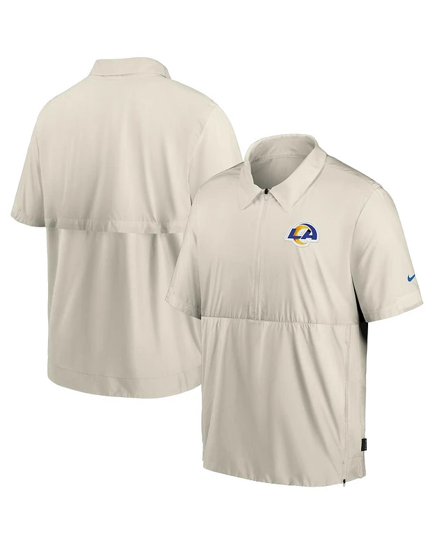 Nike Men's Bone Los Angeles Rams Sideline Coaches Half-Zip Short Sleeve Jacket
