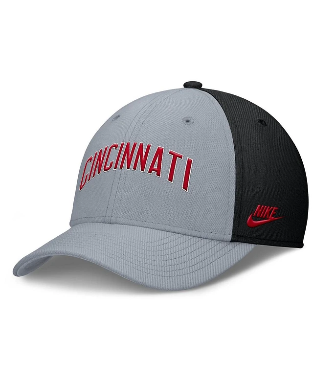 Nike Men's Gray/Black Cincinnati Reds Rise Swoosh Performance Flex Hat