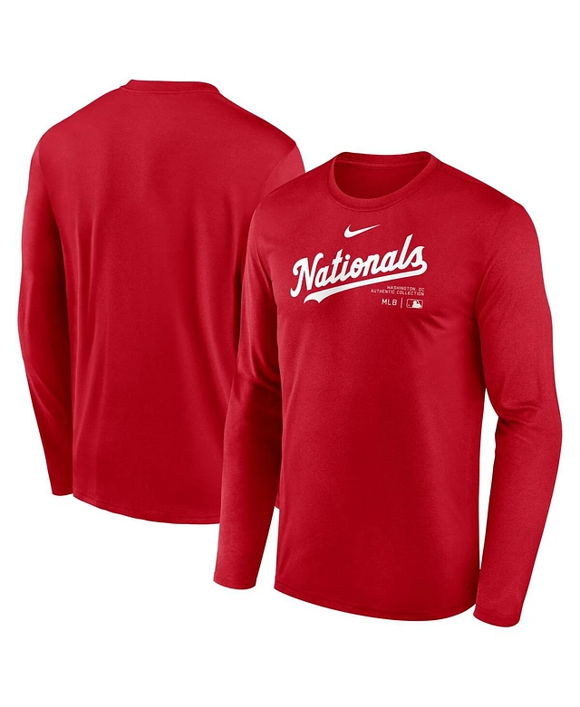Men's Nike Red Washington Nationals Authentic Collection Team Logo Legend Performance Long Sleeve T-shirt