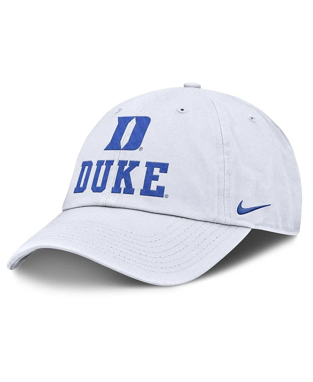 Nike Men's White Duke Blue Devils 2025 Sideline Club Adjustable Hat