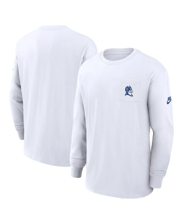 Nike Men's White Duke Blue Devils Legacy Max90 Pocket Long Sleeve T-Shirt