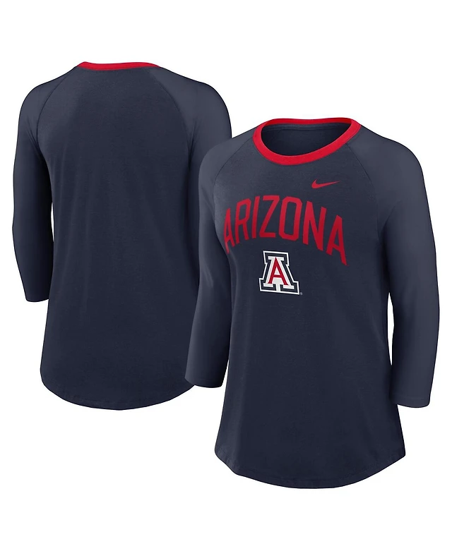 Nike Women's Navy Arizona Wildcats 3/4-Sleeve Raglan Tri-Blend Top