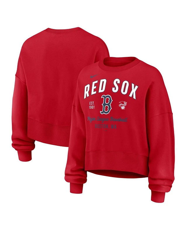 Nike Women's Red Boston Red Sox Oversized Long Sleeve Cropped Pullover Sweatshirt