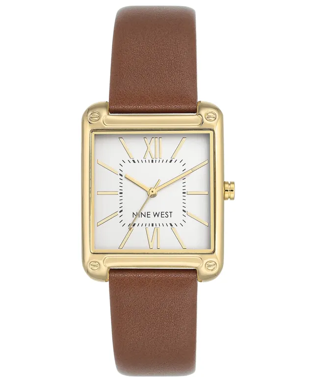 Nine West Women's Quartz Square Tan Faux Leather Band Watch, 29mm
