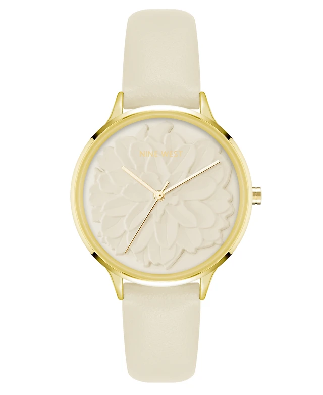 Nine West Women's Quartz Cream Faux Leather Band Watch, 34.5mm