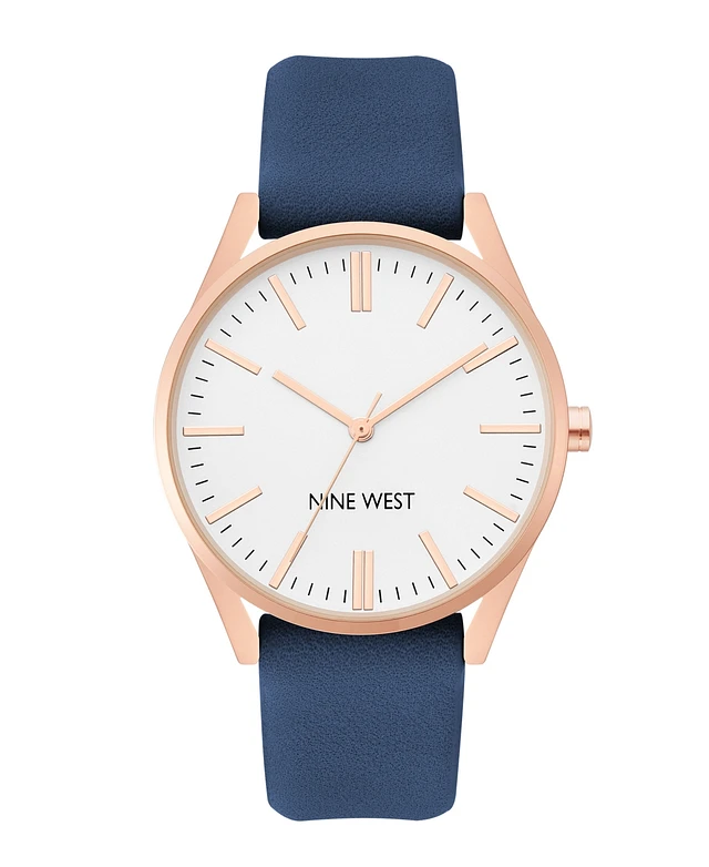 Nine West Women's Quartz Navy Faux Leather Band Watch, 36mm