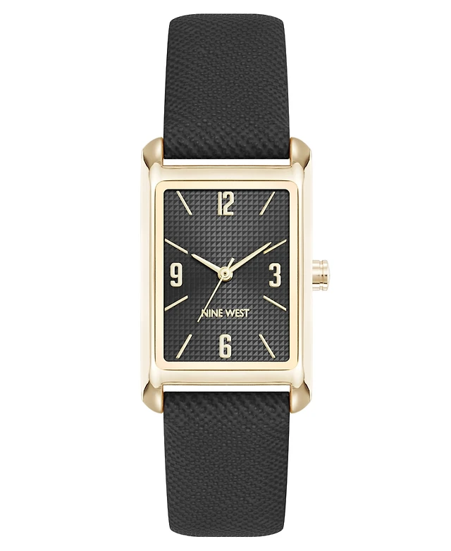 Nine West Women's Quartz Rectangular Gold-Tone and Polyurethane Leather Band Watch