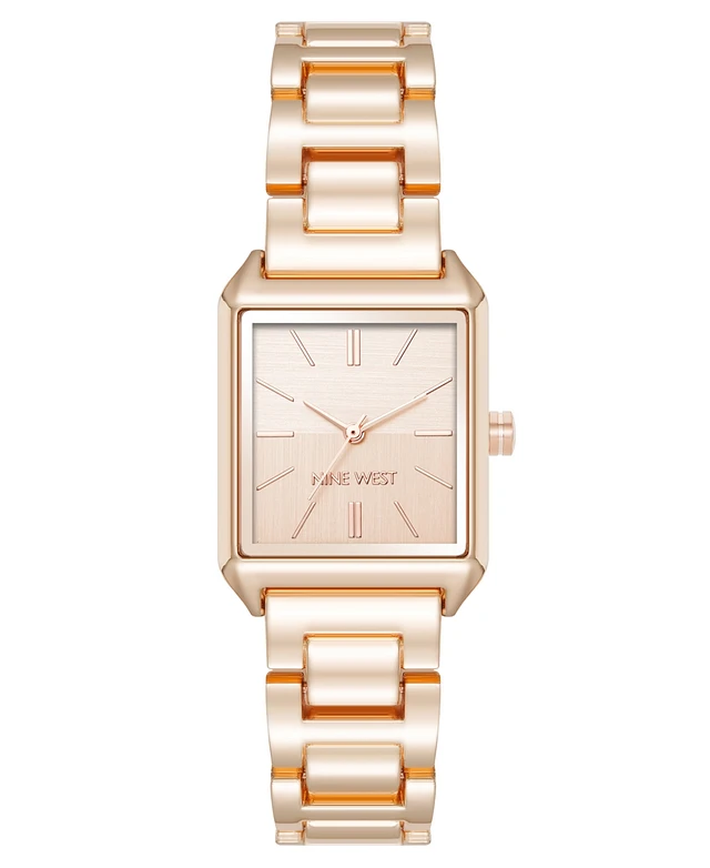 Nine West Women's Quartz Square Rose Gold-Tone Alloy Link Bracelet Watch, 27mm