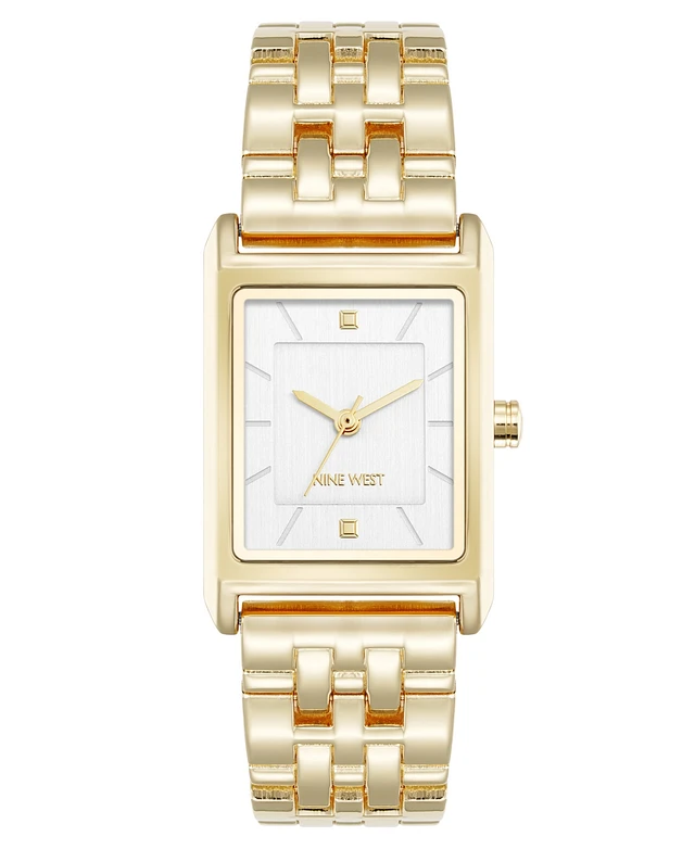 Nine West Women's Quartz Rectangular Gold-Tone Metal Alloy Bracelet Watch, 24mm