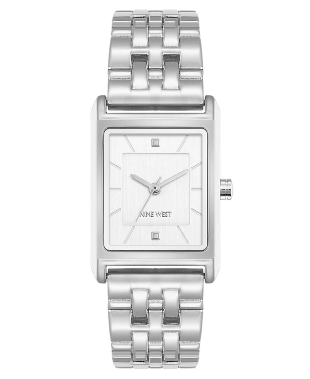 Nine West Women's Quartz Rectangular Silver-Tone Metal Alloy Bracelet Watch, 24mm