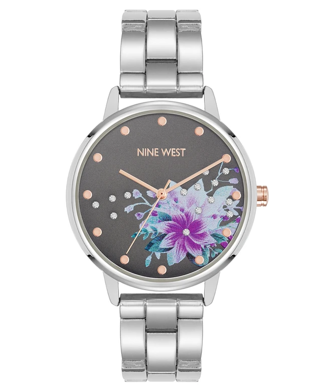 Nine West Women's Quartz Silver-Tone Metal Alloy Floral Dial Watch