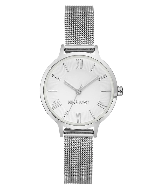 Nine West Women's Quartz Silver-Tone Stainless Steel Mesh Band Watch, 31mm