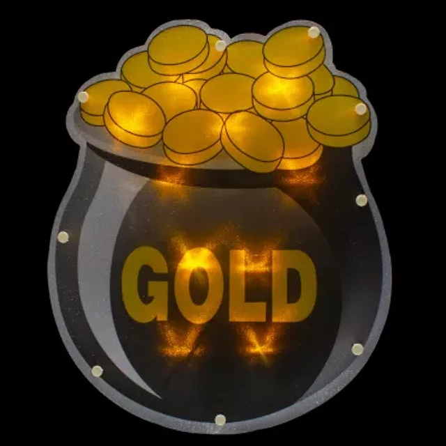 Northlight 12in Led Lighted Irish Pot Of Gold Silhouette St. Patricks Day Window Decor