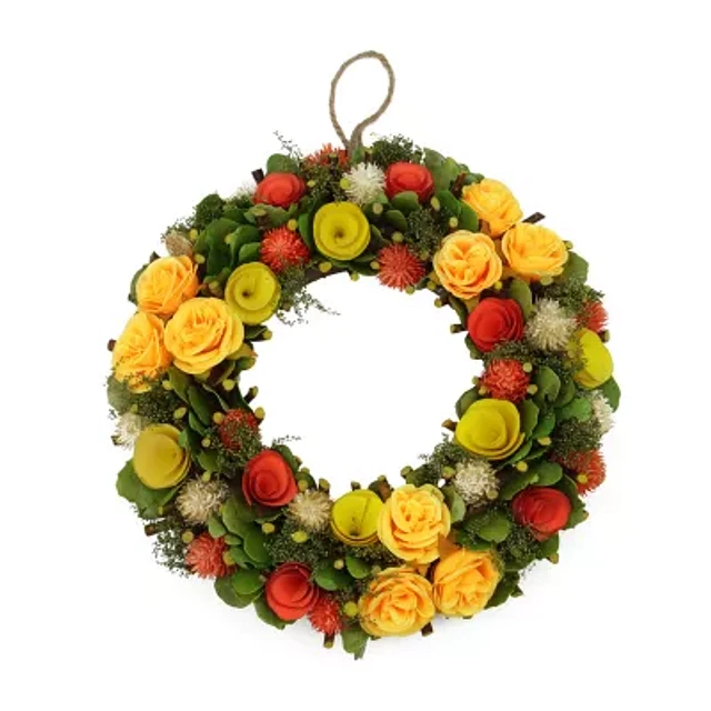 Northlight 24in Yellow Peony Artificial Fall Harvest Twig Wreath