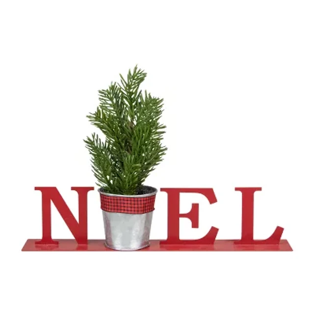 Northlight 13" Potted Faux Pine In Metal "Noel" Planter Christmas Tabletop Decor