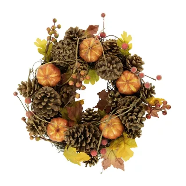 Northlight 13.5in Pinecone And Pumpkin Unlit Wreath