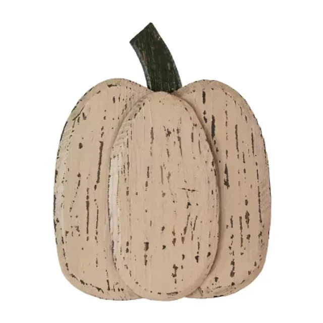 Northlight 10.5" Small White Wooden Fall Pumpkin With Stem Thanksgiving Tabletop Decor