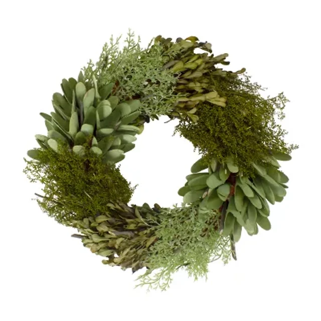 Northlight 14in Cedar Succulent And Day Grass Green Wreath