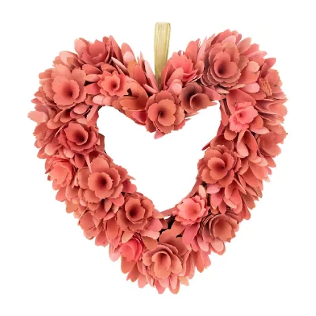 Northlight 14in Salmon Pink Valentine'S Day Wooden Floral Heart Wreath