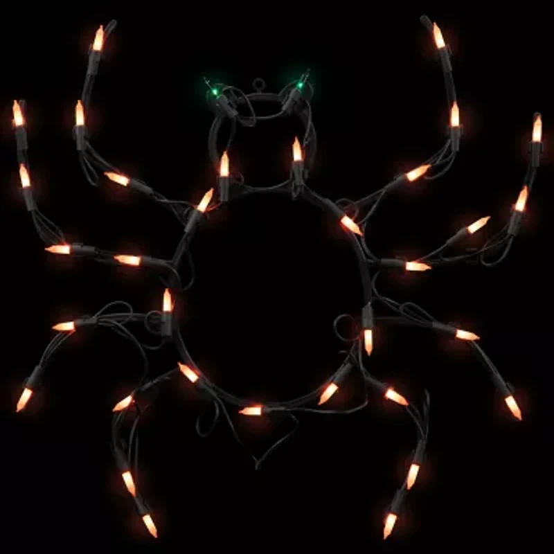 Get ready to cast a spooky spell on your home this Halloween with this spider window silhouette! This eerie arachnid-themed decoration is illuminated with vibrant orange and green bulbs that will bring a spine-tingling glow to your windows. With its double-sided design this sinister spider silhouette is perfect for both indoor and outdoor use allowing you to create a hauntingly captivating display anywhere you choose. Plus, you can rest easy knowing that it's ul-certified and approved for safety so you can enjoy the Halloween festivities without any worries. Whether you're welcoming trick-or-treaters or hosting a spooky soiree this decoration is sure to make a hair-raising statement that will leave everyone spellbound! Product features: color: orange and green bulbs / black wire. Number of bulbs: 35. Bulb size: mini. 24" lead cord. Double-sided design. Fully assembled. Additional product features: super bright bulbs. Ul certified and approved for indoor or outdoor use. If one bulb burns out the rest will stay lit. Comes with one suction cup replacement bulbs and a spare fuse. Contains 1 plug with end connector which allows you to stack multiple lighted items together (not to exceed 210 watts). Wire gauge: 22. 120 volts 60 hertz .12 amps 14.4 watts. Dimensions: 15"h x 15"w x 0.25"d. Material(s): plastic/wire/glass bulbs