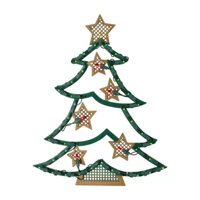 Northlight 17.75in Lighted Green And Gold Tree With Stars Silhouette Christmas Window Decor