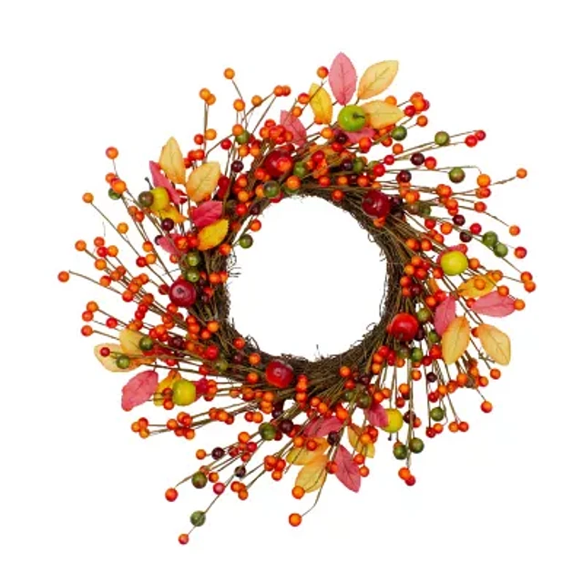 Northlight 18in Berry And Apple Foliage Twig Unlit Wreath