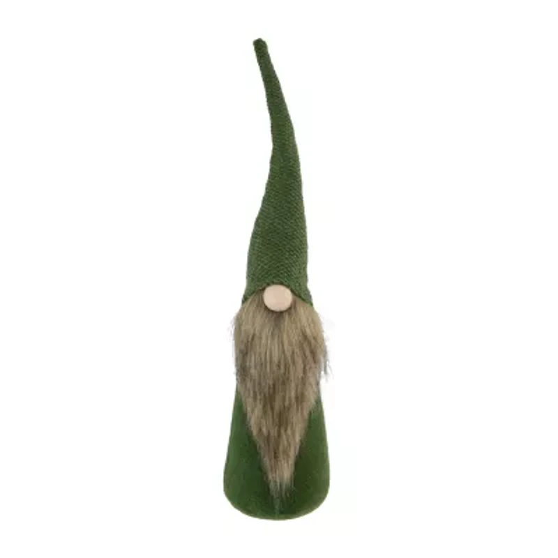 Bring a touch of whimsical charm to your holiday decor with This adorable Christmas gnome decoration this gnome features a soft body and a pointed hat in a festive forest green color his long brown beard add to his charming personality while his weighted bottom ensures stability on any flat surface perfect for your mantel bookshelf or tabletop This gnome will make a wonderful addition to your Christmas decorations and is sure to bring a smile to everyone's face product features: standing Christmas gnome decoration soft cone shape and pointed hat in forest green features a long brown beard hat features bendable wire for easy shaping weighted flat base for stability perfect for your mantle tabletop or desk recommended for indoor use only dimensions: 19"h x 4.25"w x 4"d material(s):polyester/faux fur