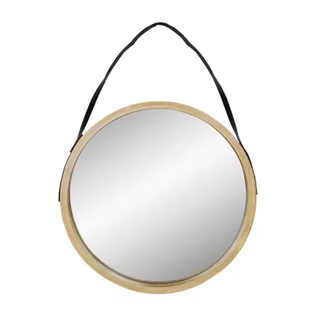 Northlight 20" Wooden Finish With Black Hanging Strap Round Wall Mirror
