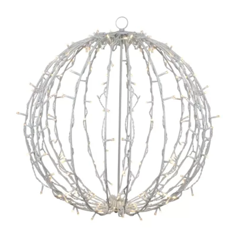 Create your own winter wonderland this holiday season. Lit with 200 pure white LED lights this hanging ball is sure to light up your indoor or outdoor decor. Great for adding a dazzling glow to seasonal or special occasion decorating.