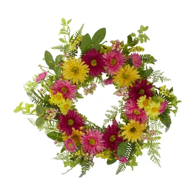 Northlight 23in Daisy Berry Yellow Green Wreath