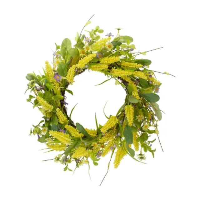 Northlight 23in Daisy Berry Yellow Green Wreath