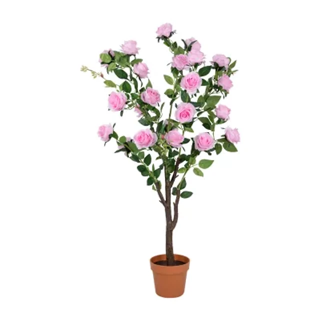 47'' Potted Green and Pink Artificial Rose Tree